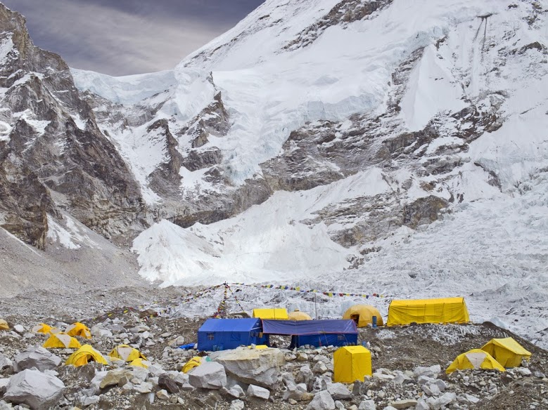 Ok folks, this is when AMS starts taking some effect on some people so extra careful is essential. Today is the day that we have been waiting for; base camp is just a few hours away. After breakfast we will head to Base Camp, trekking though a rocky path on the Khumbu Glacier we will reach base camp where you will have time to take some pictures and appreciate the view. If you are trekking between March and May you will get the chance to see all the commercial expeditions attempting to reach the summit, after lunch we will head back to Gorakshep to spend the night.