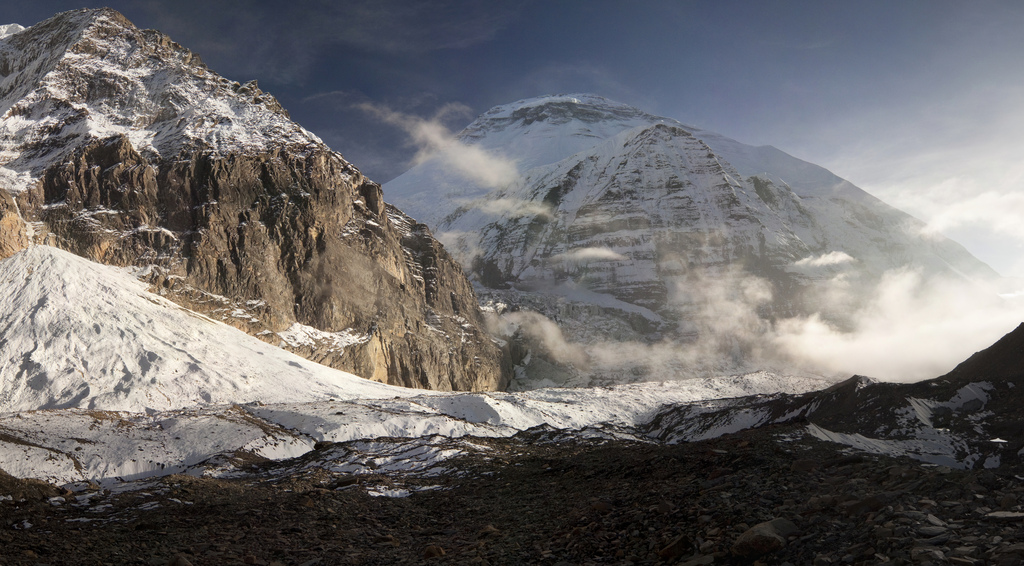 Dhaulagiri means “White Mountain” in Sanskrit. Perhaps it obtained the name as its one of the few 8000m peaks that’s clearly visible from the hot plains of India. It was considered the world’s highest mountain between 1808 and 1838 until surveys indicated that Kangchenjunga was in fact higher and then in 1858 it dropped even further on the list when Everest was identified as the world’s tallest peak. It was first climbed in 1960 by a Swiss-Austrian team taking the Northeast Ridge which is the rout normal. The mountain gains nearly 7,000 m (22,970 ft) from the Kali Gandaki River just 30 km away. Disaster struck in 1969 when a massive avalanche swept away 10 people of an 11 man team led by an American, Boyd Everett.