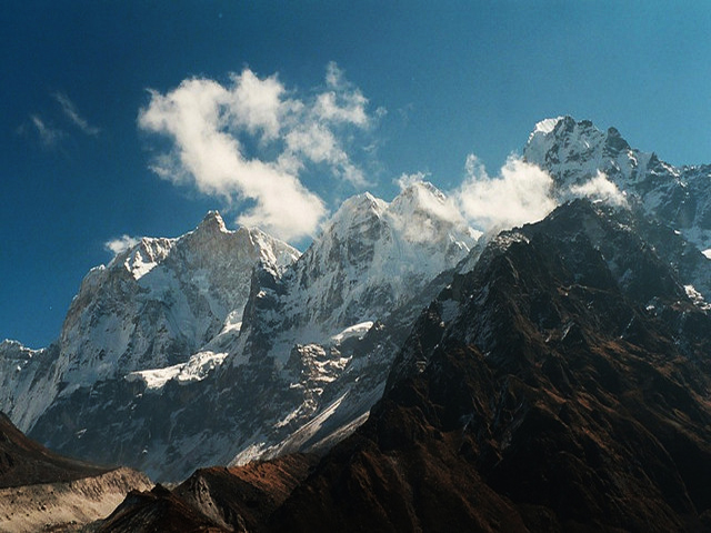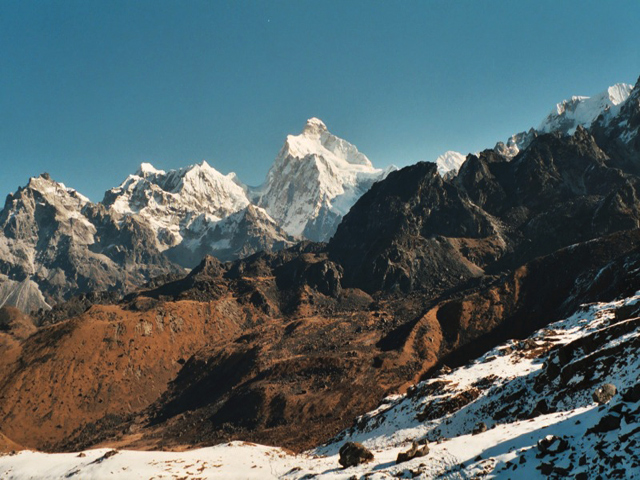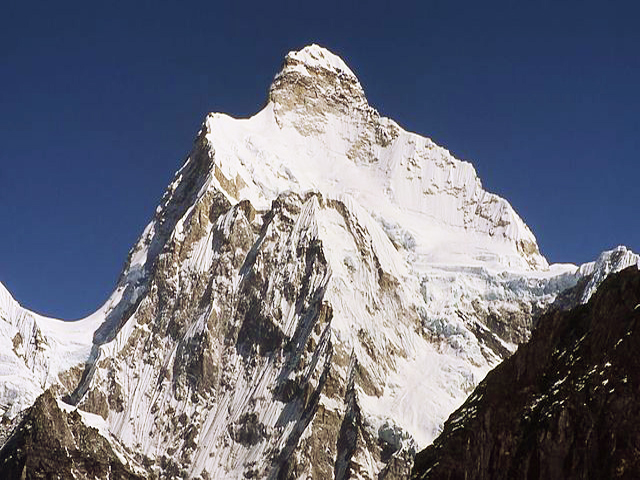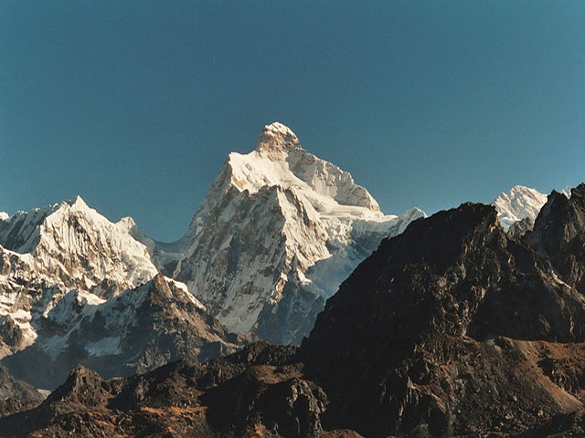 Jannu or Kumbhakarna is the 32nd highest mountain in the world. It is an important Western outlier of Kangchenjunga, the world's third highest peak. Jannu is a large and steep peak in its own right, and has numerous challenging climbing routes. The official name of this peak is Kumbhakarna, but the designation Jannu is still better known. It is called Phoktanglungma in native Limbu language, (Phoktang means Shoulder and Lungma means Mountain), literally "Mountain with shoulders" and it is sacred in Kirant religion.Jannu is the highest peak of the Kumbhakarna Section of the Kangchenjunga Himal, which straddles the border between Nepal and Sikkim, and lies entirely within Nepal. A long ridge connects it with Kangchenjunga to the east.Jannu is the 32nd highest mountain in the world (using a cutoff of 500m prominence, or re-ascent). It is more notable for its climbing challenge, and is one of the hardest peaks in the world in terms of technical difficulty because of its complex structure, its vertical relief, and the particularly steep climbing near the summit.