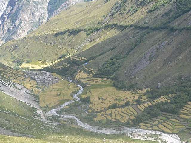 Trekking from Palbang to Muchu. A relatively easy downhill day that ends at the Humla Karnali River.